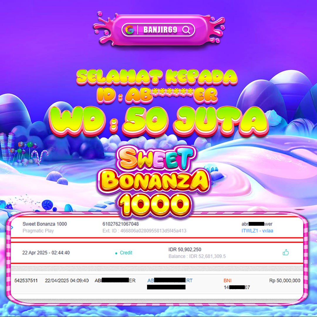 Selamat kepada user ID : AB**IP Telah berhasil melakukan penarikan sebesar Rp. 8,000,000 di Situs Banjir69